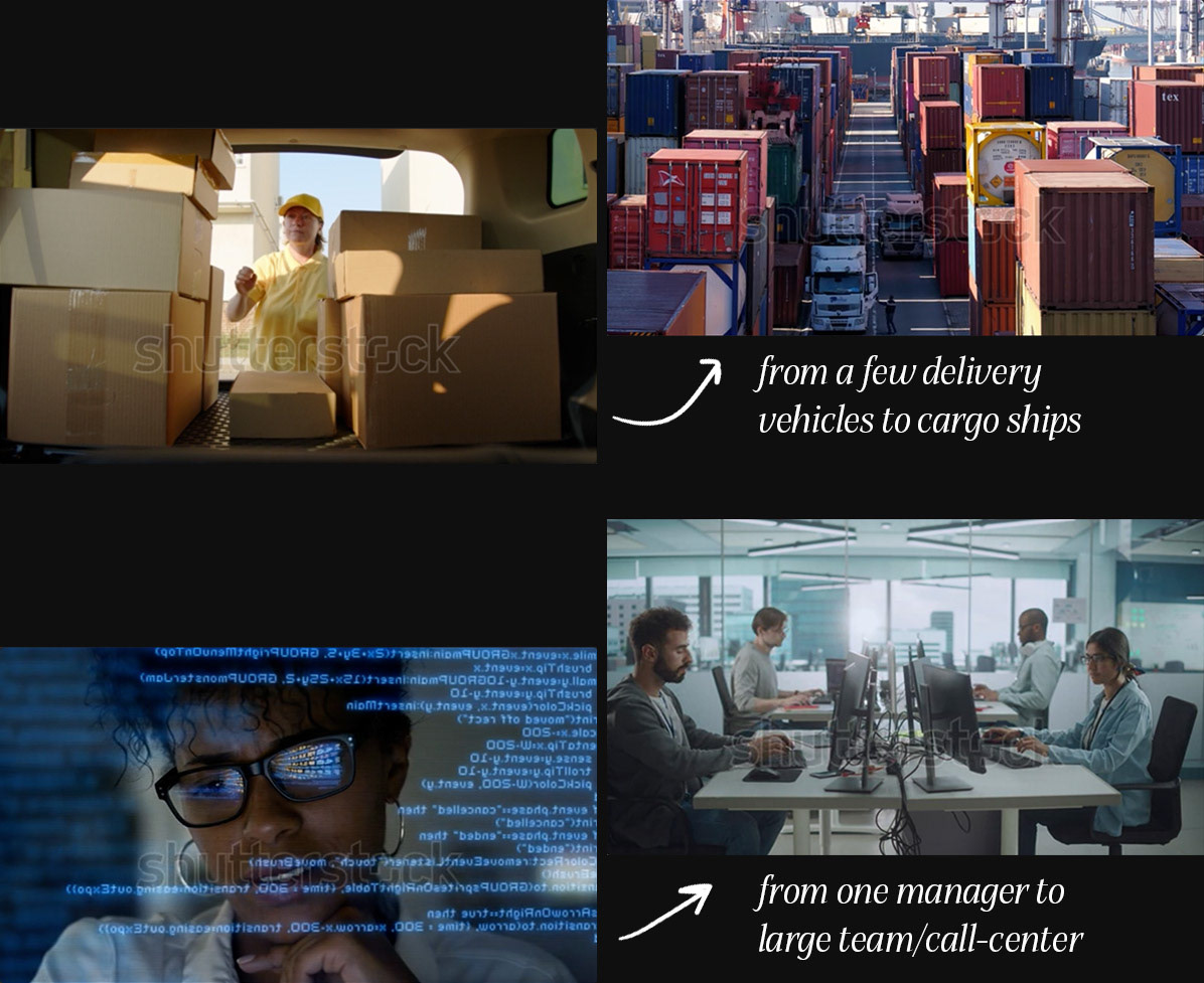 On this project, I worked closely with the client’s marketing department. After reviewing the script, I pitched the primary visual concept of juxtaposing different scales of business processes to visualize the client's journey with Filuet: from small warehouses to large logistics hubs, from a few delivery vehicles to cargo ships, etc.