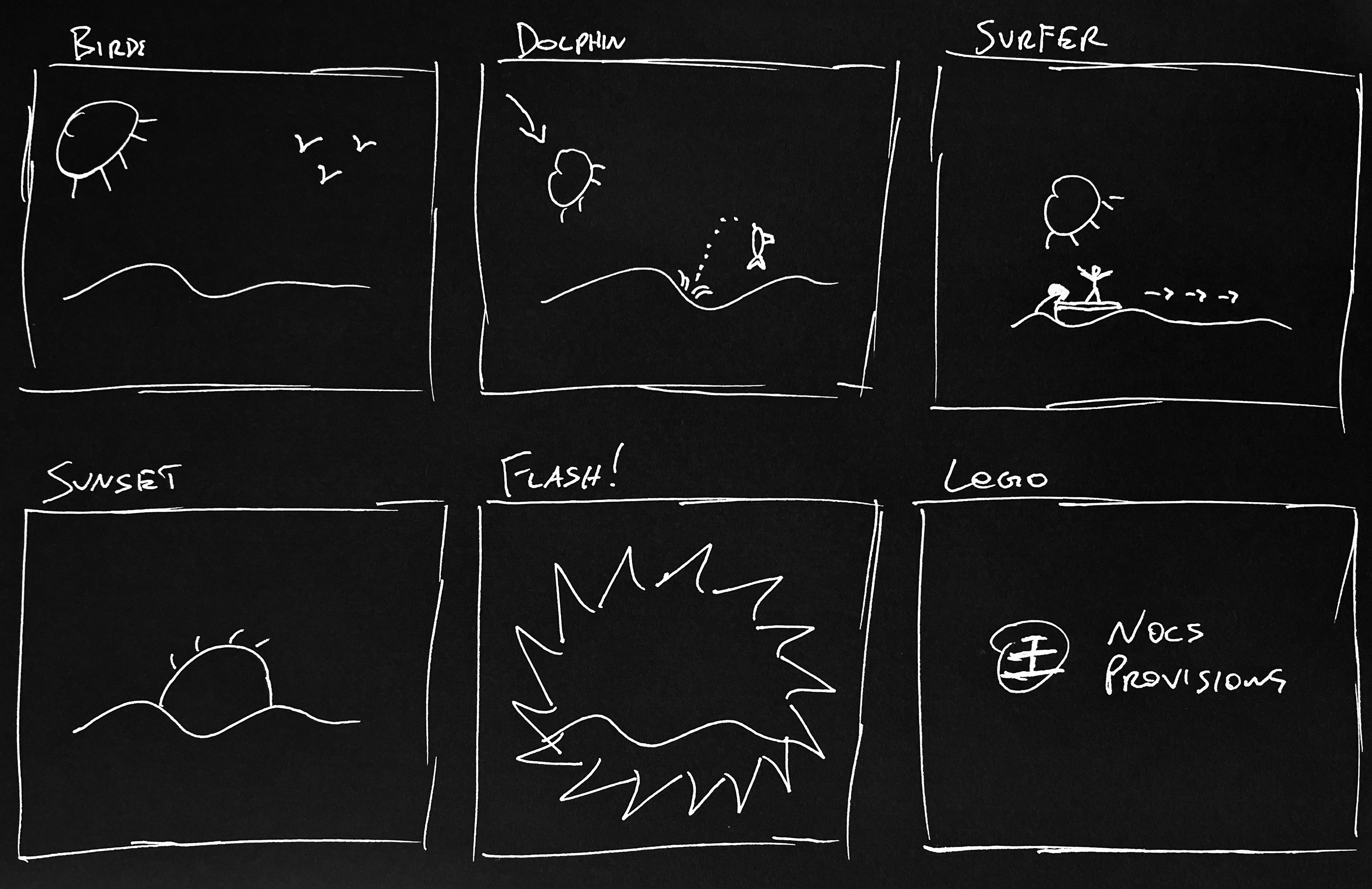 Following an initial discussion with the client, I sketched out a basic idea of the animation: view through binoculars, distorting the sun right on the horizon line and merging its distorted lines with the waves, and then the final logo is revealed.